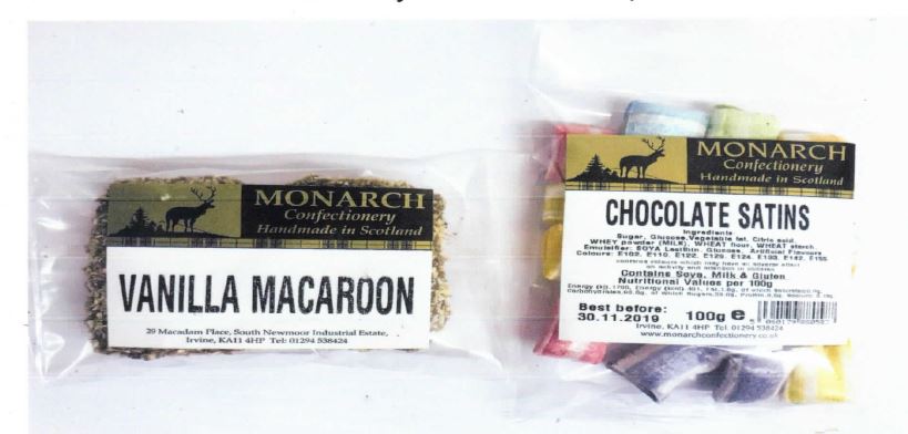 Candyco recalls Monarch Confectionery chocolate satins (boiled sweets) and three flavours of Monarch Confectionery macaroon bars because they contain milk which is not correctly declared on the label. This means the products are a possible health risk for anyone with an allergy or intolerance to milk or milk constituents.
