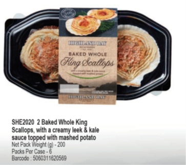 Highland Bay Seafoods is recalling their Baked Whole King Scallops with a creamy leek & kale sauce topped with mash potatoes because it contains fish which is not mentioned on the label. This means the product is a possible health risk for anyone with an allergy to fish.