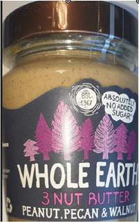 Kallo Foods Ltd is recalling Whole Earth 3 Nut Butter because it contains peanuts, pecan nuts and walnuts and may contain traces of other nuts which are not written in English on the back label. This means the product is a possible health risk for anyone with an allergy to peanuts and/or pecan nuts and/or walnuts and other nuts.