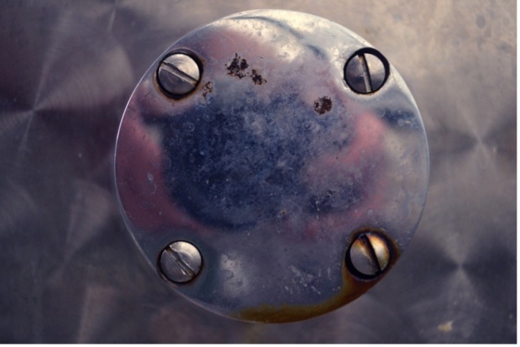 Figure 1: Examples of niches with the potential to contain plant resident strains of L. monocytogenes. A) metal-to-metal joints that are not fully welded; B) wet and corroded collar and screws.